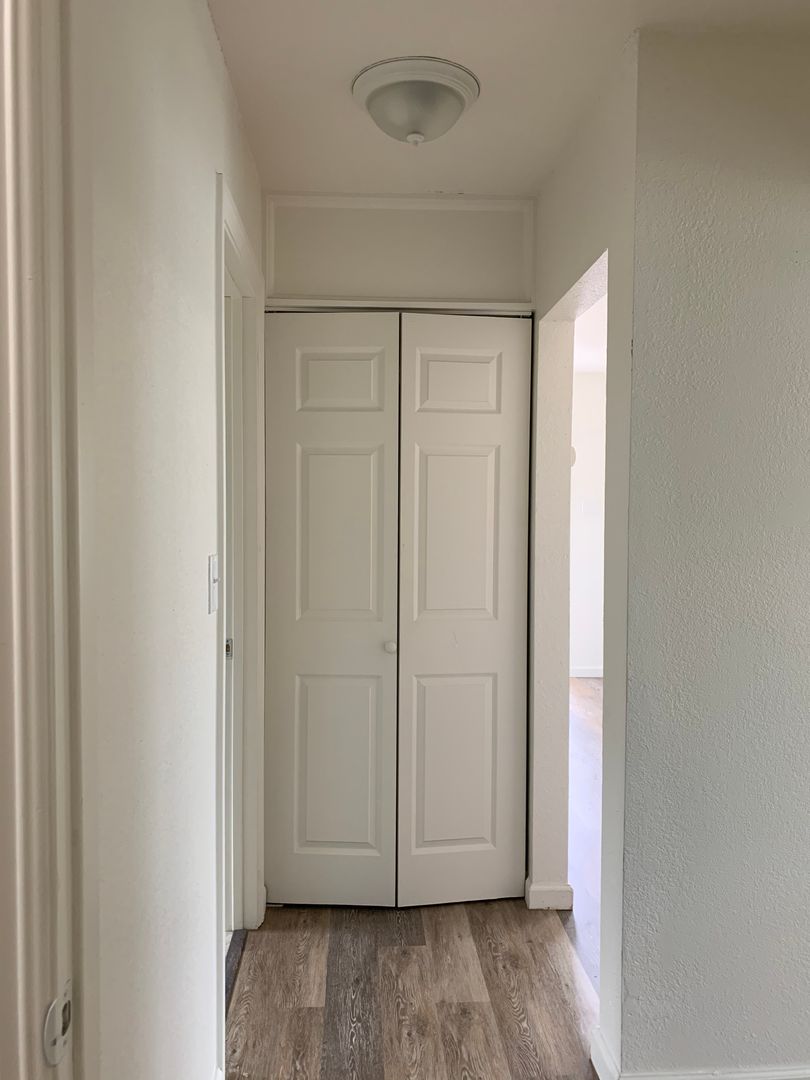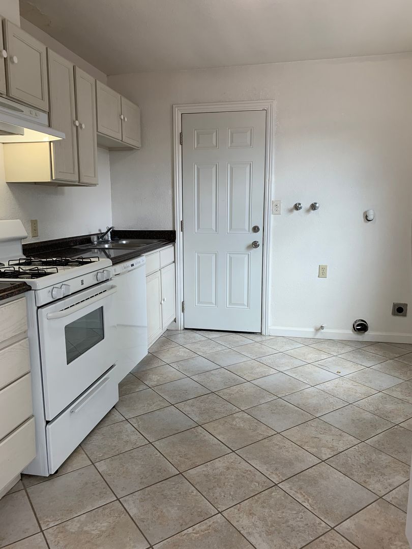 Great two bedroom one bath home with lvp wood flooring in living room and hallway and carpet in bedrooms, tile in bathroom and kitchen. This cute cottage has one off street parking and additional off street parking for guests. It includes washer and dryer hook ups and dishwasher. Enjoy the charm of a white picket fence and privacy of a standalone unit in a great neighborhood. Owner pays sewage.